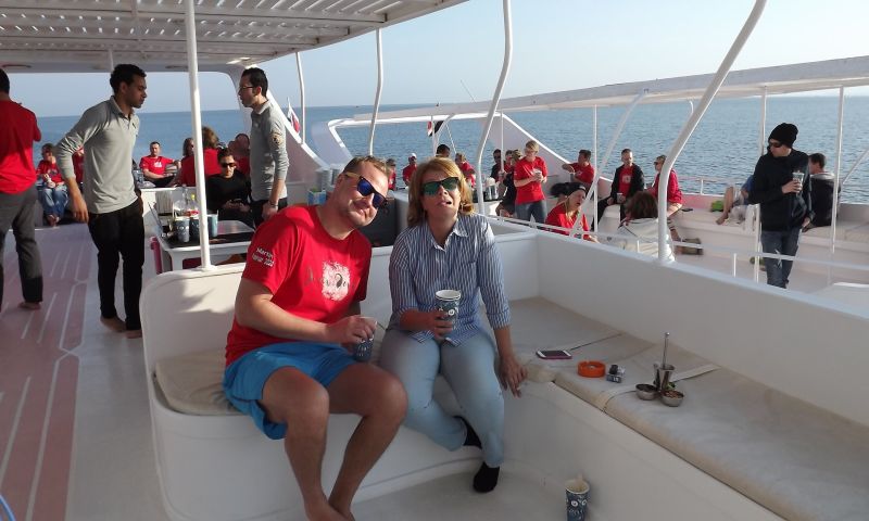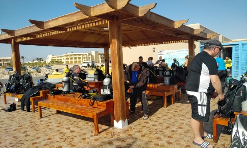 Eine seit Jahren hervorragend eingespielte und hilfsbereite Crew und die Toptauchplätze um die Soma Bay lassen jede Ausfahrt zu einem besonderen Erlebnis werden. In der Regel bietet die Tauchbasis auf den Ganztagestouren zwei bzw. drei Tauchgänge und dazwischen eine warme abwechslungsreiche Mahlzeit in Buffetform an Bord des Schiffs an. Die Tauchbasis verfügt über einen großen Open-Air Bereich mit Check-In Schalter, Schulungsräumen, Taucherbar mit herrlichem Blick über den Strand und den Steg zum Hausriff, mehreren Trockenräumen für Gästeequipment und einen Shop mit den wichtigsten Tauchutensilien, T-Shirts und Souvenirs.